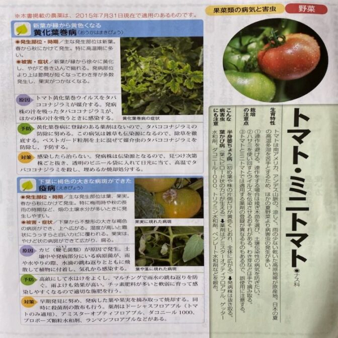 作物ごとに病害虫を紹介しました。育てている野菜・果樹の主な病気と害虫が