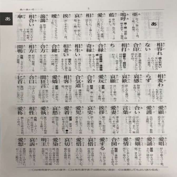 日常使用するには十分な語数を収録しました。言葉の意味や使い分け、仮名遣い、送り仮名など