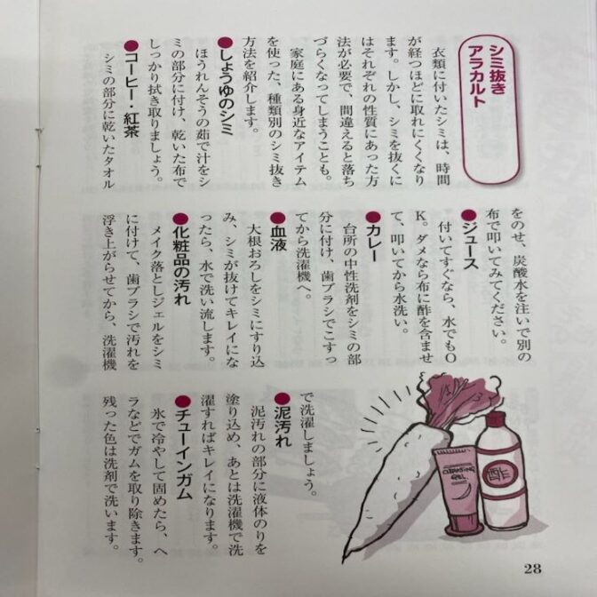 衣服のシミ抜きや、洗濯・乾燥のテクニック、防虫のコツなど、衣類に関する知識と