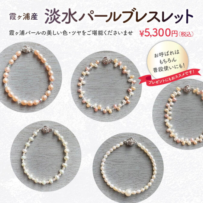 霞ヶ浦淡水パールの美しい色とツヤをご堪能くださいませ。